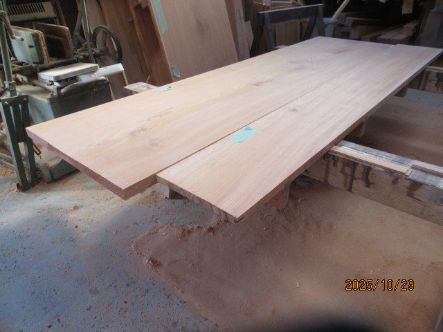こんな ケヤキの一枚板を 幅が広すぎて 自動プレーナーに入らないので